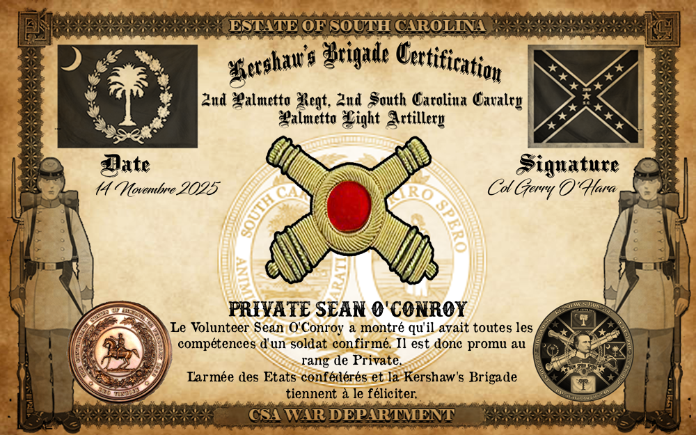 Nom: Sean O'Conroy Rang: Private Statut: Réserviste Compagnie: II-KB(Gard.Batt) Dernier combat: 14/11/2025